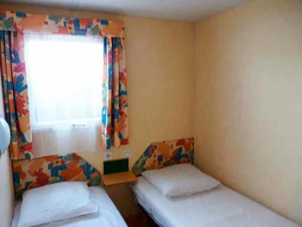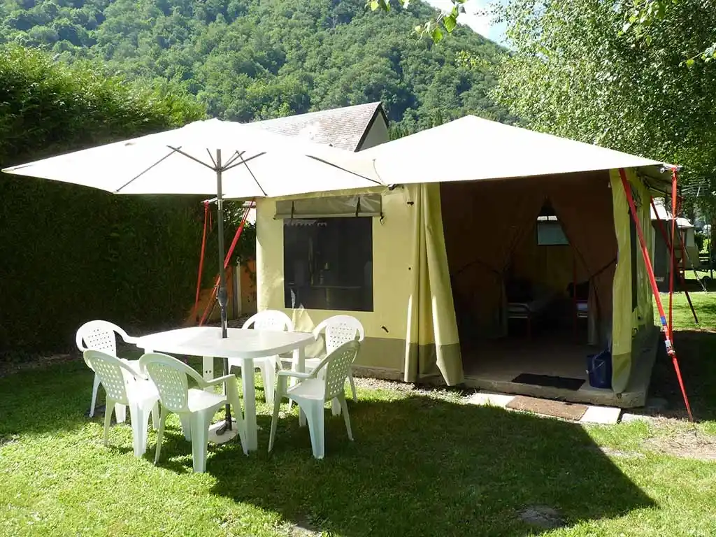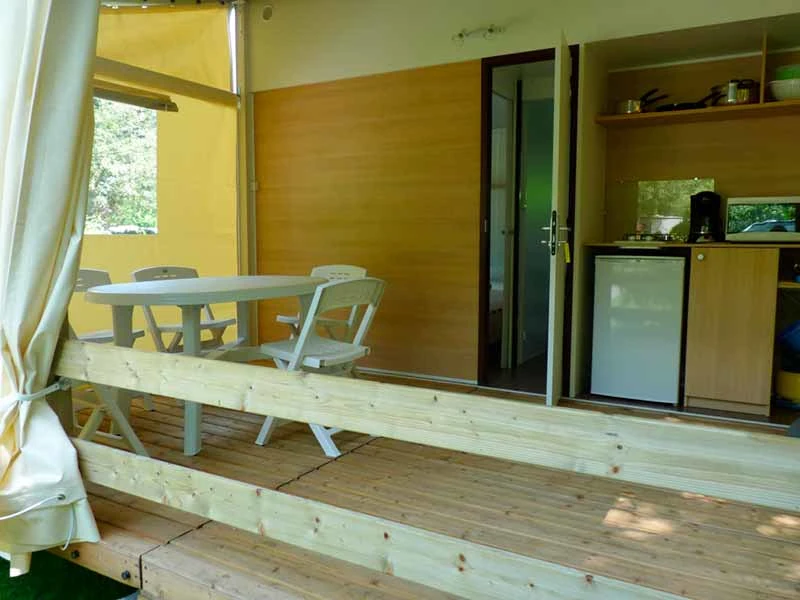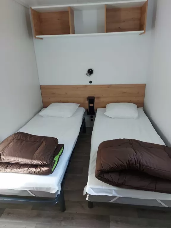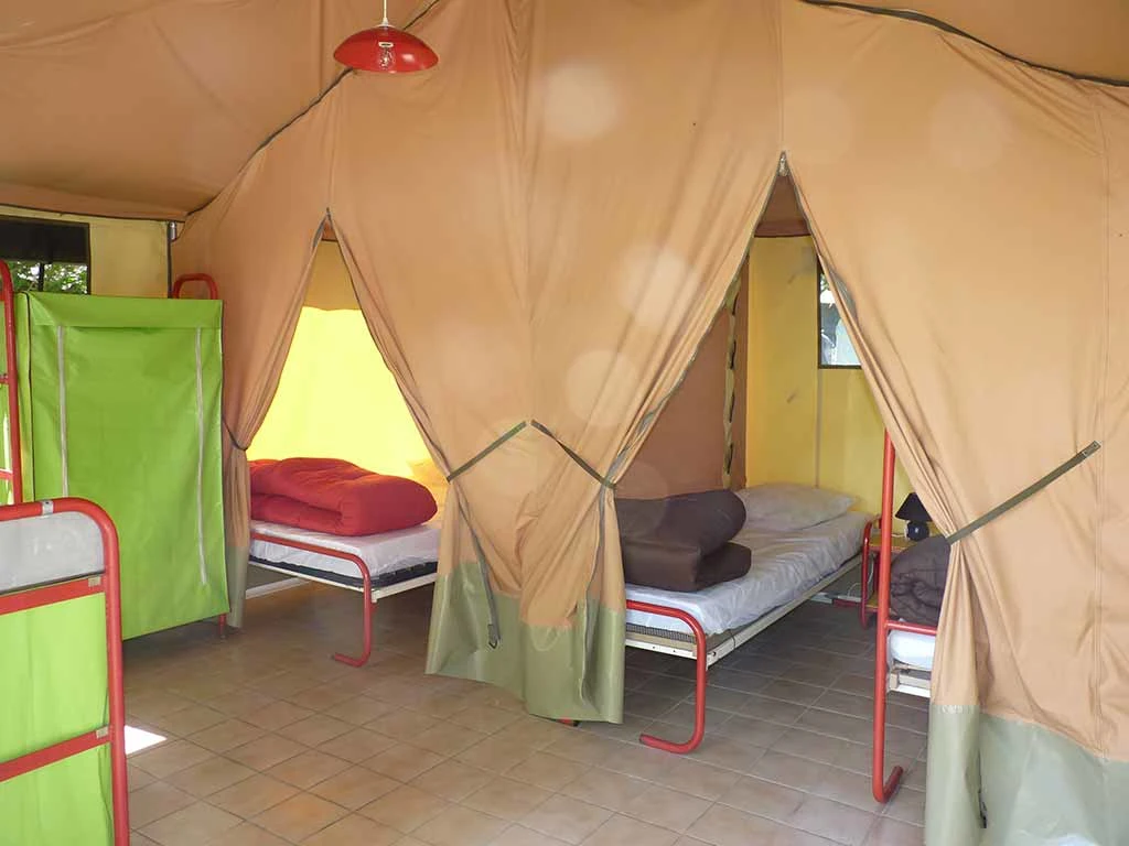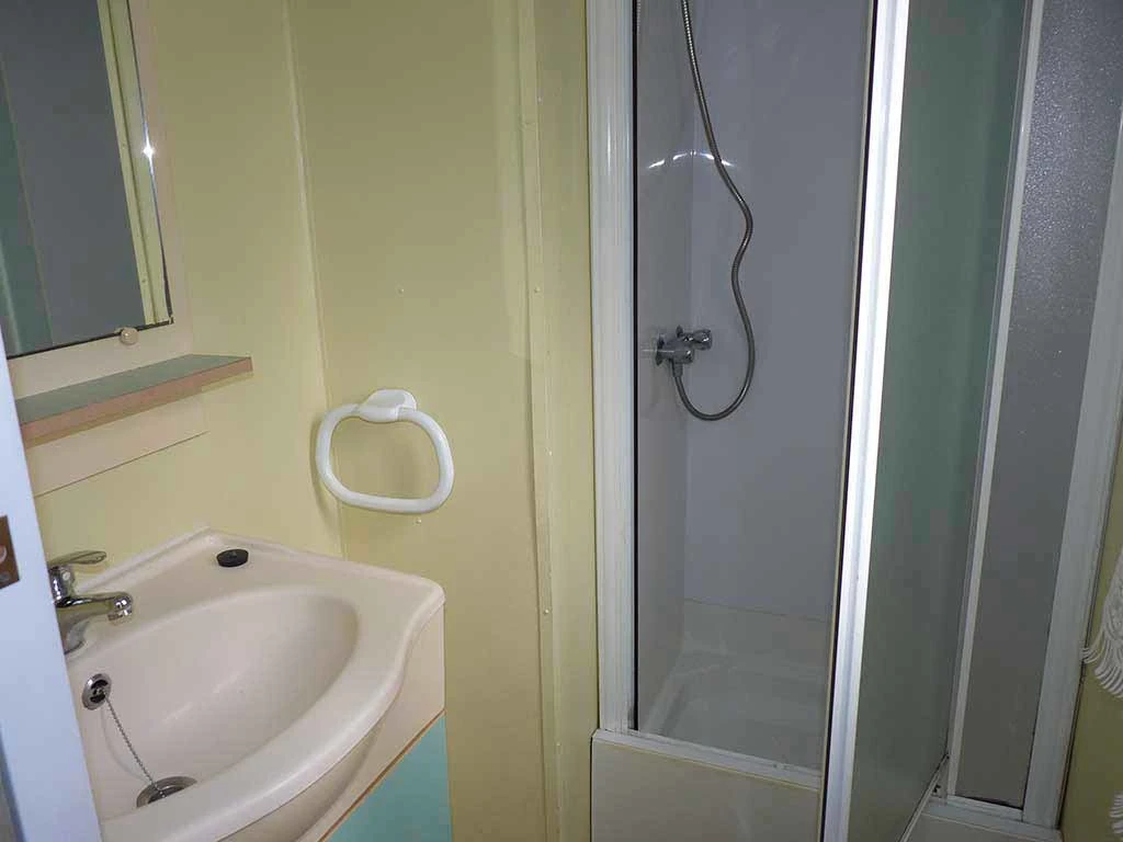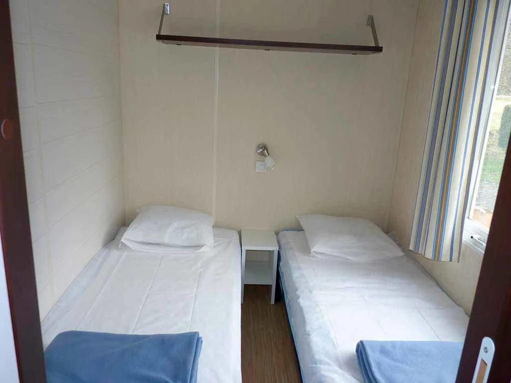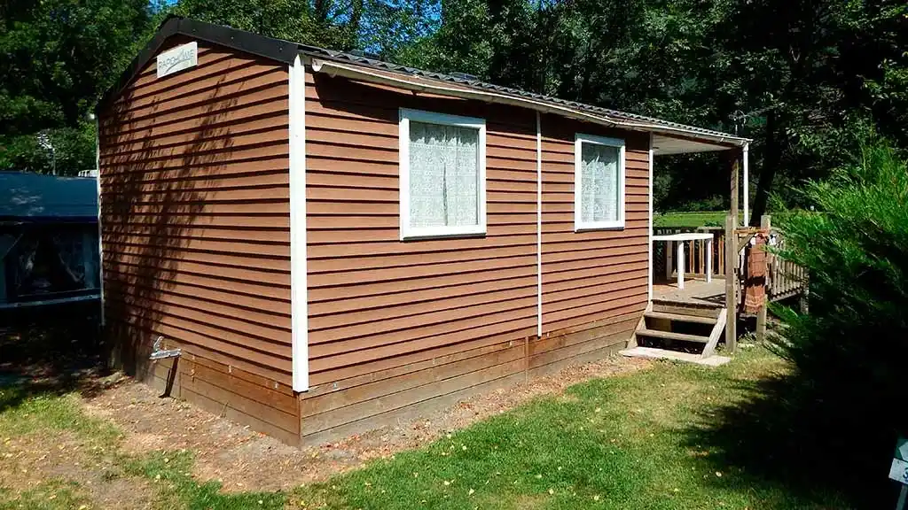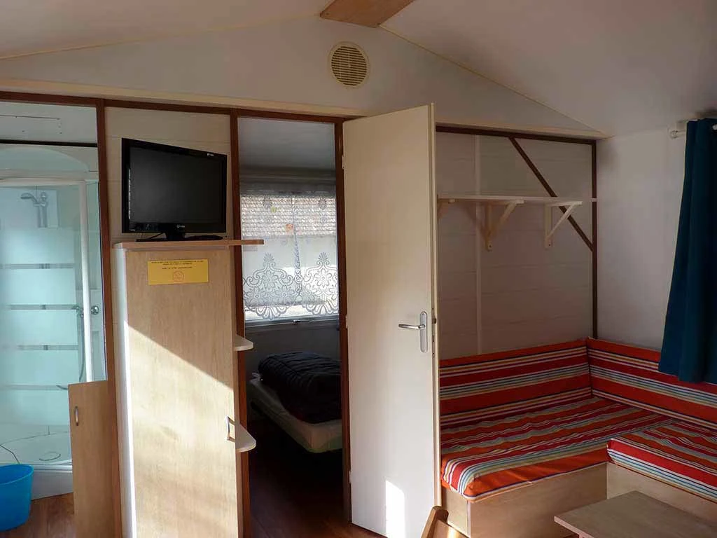 Hébergement non chauffé et non raccordé en eau avec utilisation des sanitaires collectifs du camping.